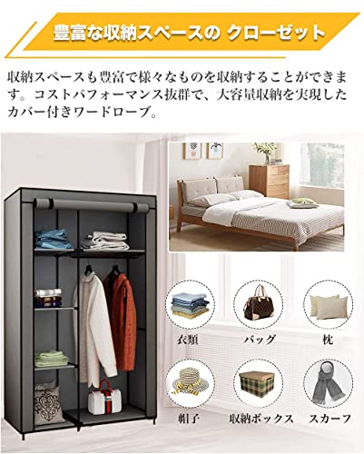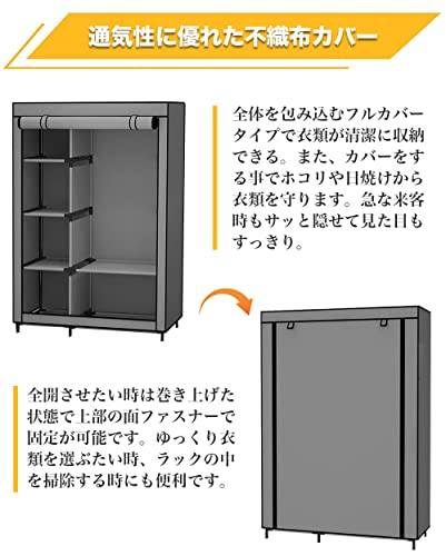 ワードローブ 大容量 クローゼット不織布カバー付き ハンガーラック シンプル収納棚 おしゃれ 組み立て式 省