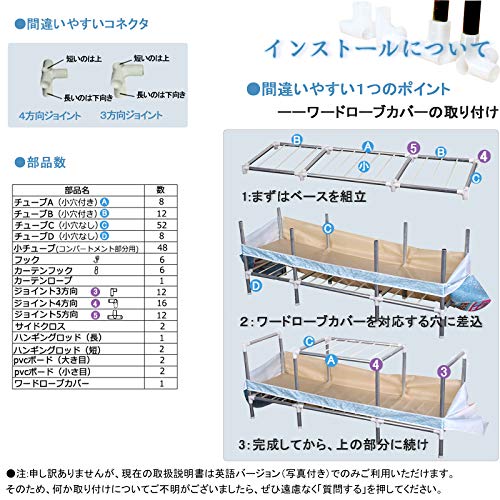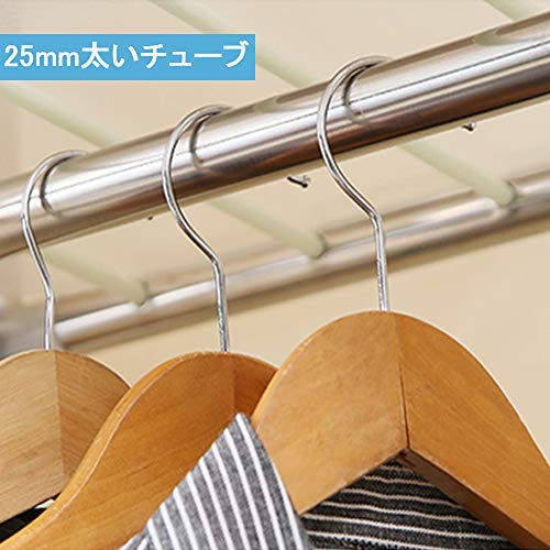 [耐荷抜群・良素材]全体耐荷重約450kgのワードローブの支持フレームは直径25mm、太めステンレス製の防錆中空軸スチールポールと耐久、高強度の連結件を使い、抜群な耐荷重が実現られます。柔らかく環境に優しい素材で作られたカーテン式カバーは洗える生地で、耐久性高いです。