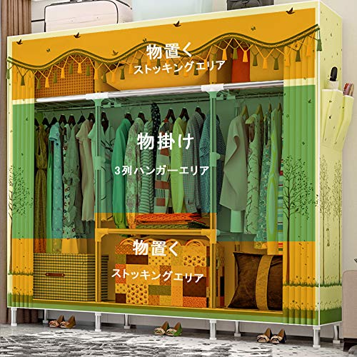 QINNKJIA ワードローブ ハンガーラック クローゼット 衣類収納 大容量 耐久 防塵 防汚 洗える カバー付き カーテ