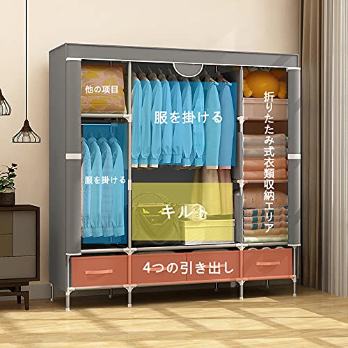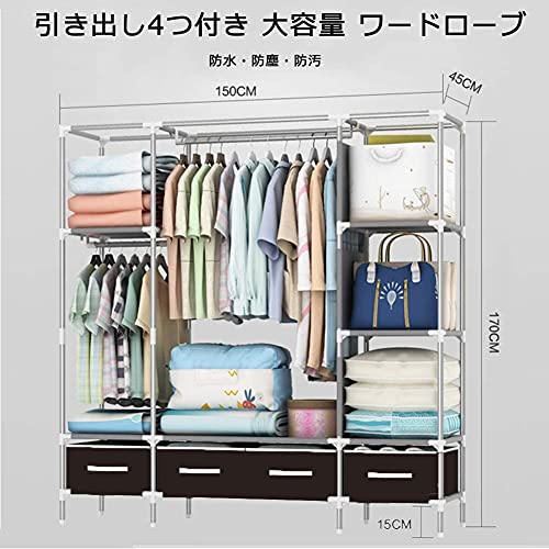 【サイズ】:幅150×奥行45×高さ170cm。重量:8.2kg。豊富な収納スペースを備え、4つの収納コンパートメントは、あらゆる種類のキルト、枕、折り畳まれた服を収納できます。中間層はあらゆる種類の服を掛けることができます,4つの引き出しには靴下、下着、パンツ、日常の小物などを簡単に収納できます。