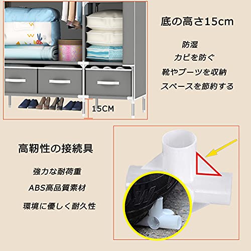 【素材】:頑丈な構造のポータブルクローゼット,直径19mmの太いスチールパイプと厚い不織布と強化プラスチックの接続口で構成されます。頑丈でながら長くお持ちできます、衣類や日用品を楽に収納することができます。