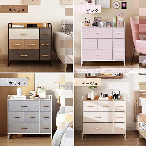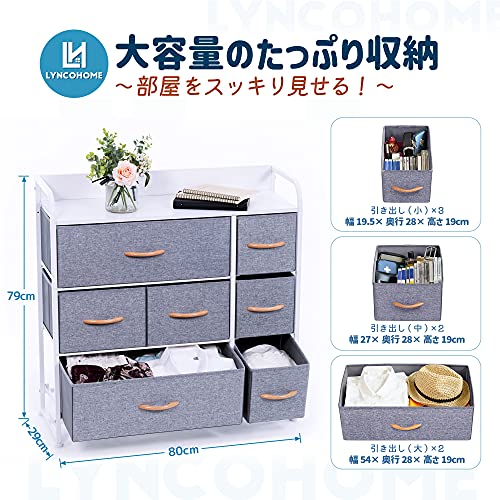 LYNCOHOME 収納 チェスト タンス ホワイト 布製 引き出し 衣類収納 転倒防止 低ホルム 北欧風 3段7杯