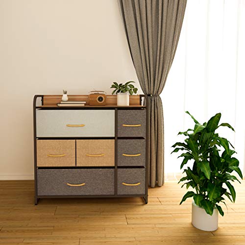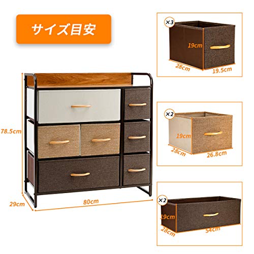 Kamiler チェスト 収納 タンス チェスト 布製 衣類収納 簡単組立チェスト 3段7杯 変形にくい 幅80*奥行29*高さ78.5cm