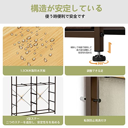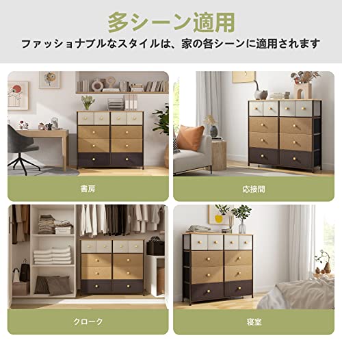 【素晴らしい用材】すべての細部は製品の高品質の体現です。滑らかな木製取っ手は天然木材で作られています。新型カチオン生地は不織布よりもしっかりしていて、破損しにくいです。表面は防水加工があって、拭くことができて、清潔しやすいです。3mmMDF中間層は引き出しの底をより丈夫にして、耐荷重が増えます。中空スチール構造は丈夫で自重も軽くできます。すべての用材は心を込めてアップグレードしてい
