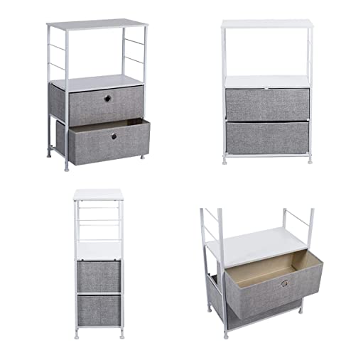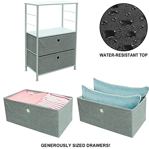 LINKLIFE 2段2箱木天板付き布製引き出したんす ファブリックボックス 収納ボックス付きラック スチールフ
