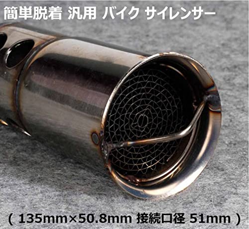簡単脱着 バイク 汎用 ステンレス サイレンサー (135×50.8mm 接続口径 51mm) マフラー 触媒 バッフル 消音器