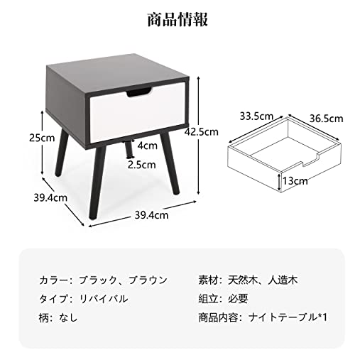 | 商品名 | ARBR Heights ナイトテーブル おしゃれ 引き出し付き リバイバル サイドテーブル シンプル 木製 コンパクト ベッ |
