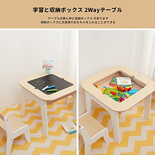 Toffy & Friends 子ども用テーブル 椅子セット 木製 キッズテーブル&チェア 3点セット 多機能 子供プレイ テーブ