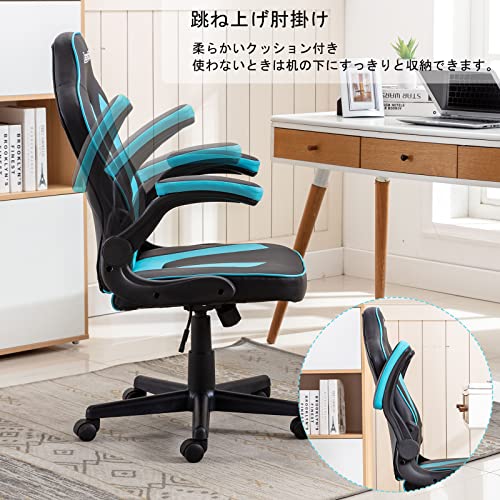 LEOVOL ゲーミングチェア コンパクト PCチェア オフィスチェア 小さめ ワークチェア ロッキング 座面昇降 ソフ