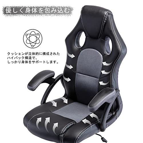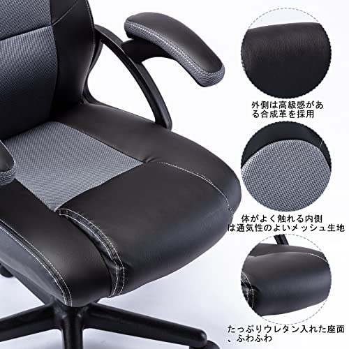 【人間工学】体を優しく包み込み、首、肩、腰、おしりにほどよいサポートを提供し、極上のゲームプレイ体験やルームワークスをサポートします。肉厚な座面と柔らかいPUレザーを使用し、長時間座っても疲れにくく快適です 。たっぷりクッション材を入れた肘掛けを搭載し、肘部の負担緩和してくれます。長い時間作業でも楽になります。在宅勤務やデレワークはおすすめ!