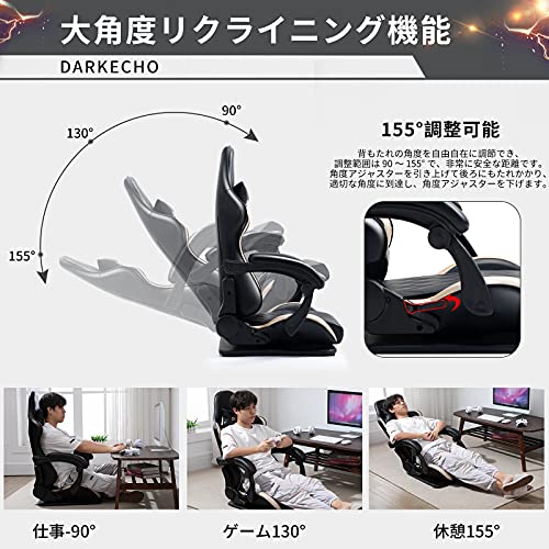 Darkecho ゲーミングチェア 座椅子 360°回転 155度リクライニング ハイバック 連動肘掛け付き ヘッドレスト ラン