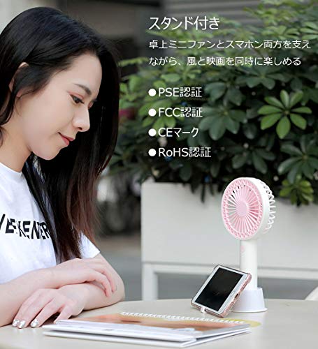 【手持ちと卓上・充電便利】お出掛けの時に手持ちタイプとして利用可能、ストラップも付き、滑って落ちる心配が要りません。スマホンと扇風機を掛けるスタンド付きで卓上タイプとして映画を見ながら風を楽しめます。USB充電タイプなのでACアダプターやモバイルバッテリー、PCから充電できます。