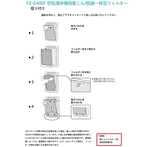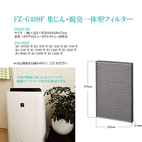 製品形名:空気清浄機用フィルター 集じん・脱臭一体型フィルター 型番FZ-G40SF(FZ-D40SFと互換性がある)1枚入り 互換品