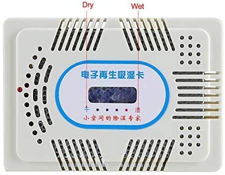 【モバイルドライ】モバイルドライは乾燥剤、除湿剤などの代わりに繰り返し使える充電式の除湿ユニットです、内装されたシリカゲルの色合いは湿度が表示されています、簡単に読み取りします。