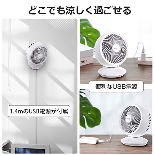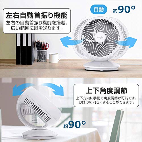 Umimile サーキュレーター 首振り 静音 扇風機 壁掛け 18cm 小型 卓上扇風機 6畳 風量3段階調節 USB電源 ホワイト