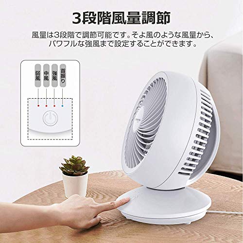 【風量3段階調整&嬉しい静音設計】:スイッチ1つで風量は微風から強風まで3段階調整ができるので、丁度よい風を堪能できますし、小さく場所を取らないので卓上 扇風機としても使用可能です。稼働中の音が囁き声と同レベルで、気にならない静音設計です。就寝時も静かな環境が得られ、作業も邪魔せず圧迫感を感じさせません。