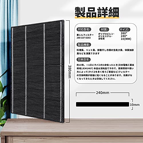 【対応品番】空気清浄機用交換フィルター洗える脱臭フィルター280 337 0203 互換品