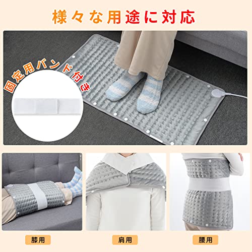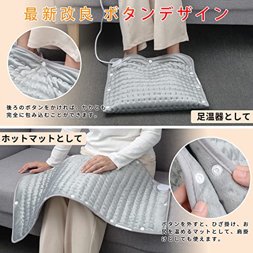 【ボタン付きデザイン いろんなシーンに大活躍】TWONE電気ホットマットだけのボタンデザインで、ボタンを留めると電気足温器としても使え、手を暖めることもできます。ボタンを外すと、ひざ掛けとして、電気座布団もとして、肩掛けとしても使用できます。短い時間で暖められますので、全身をぽかぽかになれます。TWONE電気ホットマットはこの冬の必需品になります。