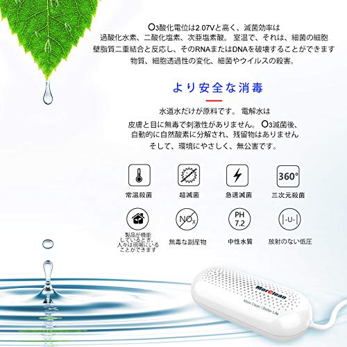 【用途】キッチンでの使用:野菜の洗浄、果物、食器などの洗浄での効果的なと残留物の除去;家庭での使用:加湿器、浴槽、洗濯機、下水道など(水道水が唯一の原料です。電解水は無害で、皮膚や目に刺激がありません。自然な酸素に自動的に分解され、残留物がなく