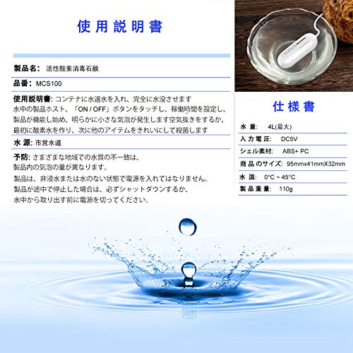 【操作が簡単】300/2000mL 水道水5/10/15/20分間(0.8~1.3ppm):マウスウォッシュと洗顔、野菜と果物、カトラリーと食器、水と酸素のマシン(加湿器)、ペット循環水マシン