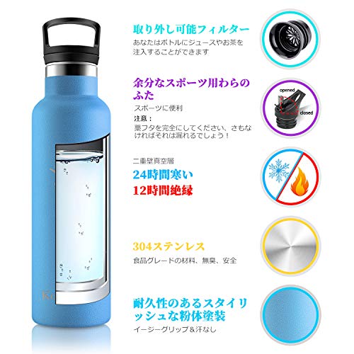 【交換可能なボトルキャップ・ストロー】ステンレス製ウォーターボトル+ストロー2本+2つのボトルキャップ。 漏れ防止ストローカバー:冷水と温水での飲用に実用的です。 ノズルが閉位置にあるとき、キャップは締められます。 ハンドルカバー:このカバーにはリフティングリングとフィルターが付いています。 注:フィルターは蓋と一緒