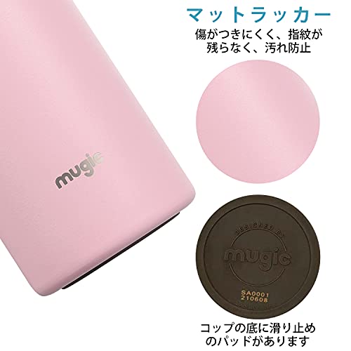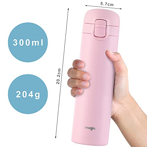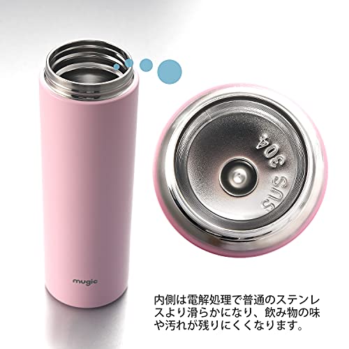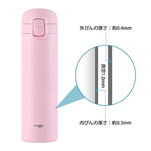mugic ロック付き 水筒 300ml ステンレス ボトル ワンタッチ 保冷 保温 直飲み 軽量 真空断熱構造 無地 ピンク