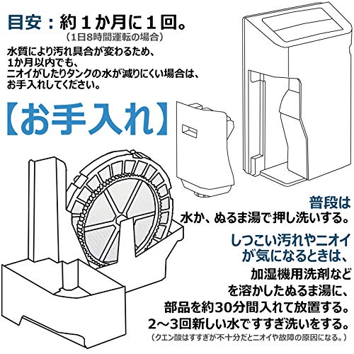【お手入れ】約1か月に1回。湿フィルターは水か、ぬるま湯で押し洗いする。