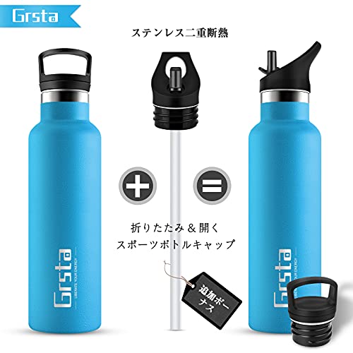 Grsta 水筒 750ml 炭酸 ボトル ストロー 大容量 直飲み ステンレスボトル 真空断熱 保温 保冷 水筒 漏れ防止 ハイ