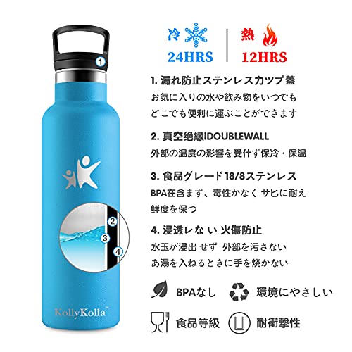 KollyKolla 1リットル 水筒/ 真空断熱ストローボトル/ 保温 保冷 /大容量直接飲用/炭酸ウォーターボトルスポーツ