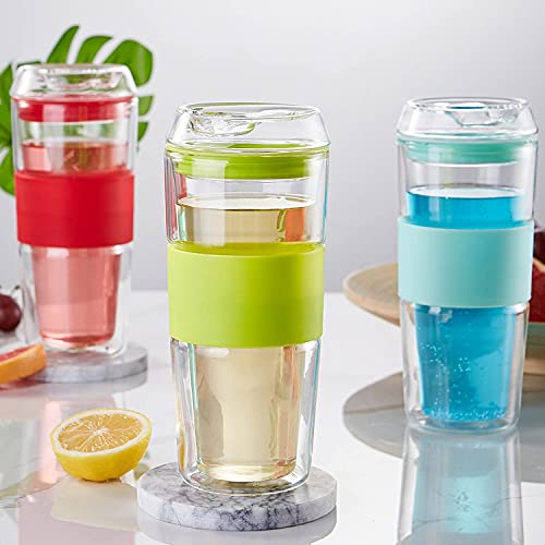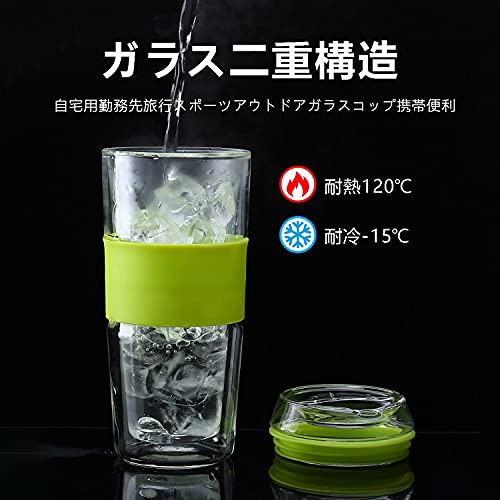 Carrock タンブラー ダブルウォール グラス 二重構造 真空断熱 直飲み 耐熱 カップ 400ML 1個入 (グリーン, 400ML)