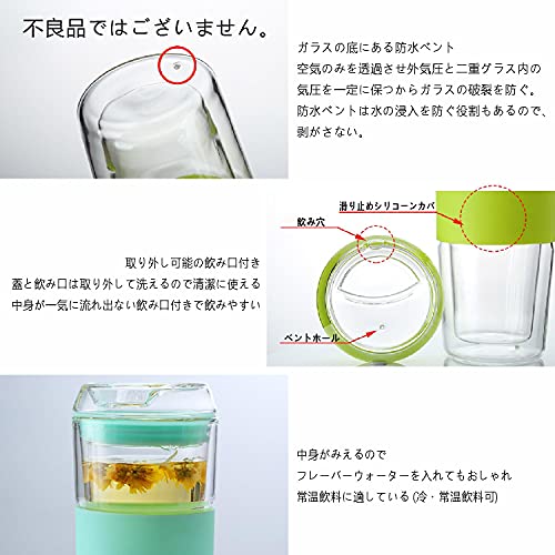 | 商品名 | Carrock タンブラー ダブルウォール グラス 二重構造 真空断熱 直飲み 耐熱 カップ 400ML 1個入 (グリーン, 400ML) |
