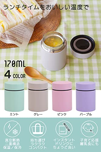 真空断熱 ミニ スープカップ 170ml ジャー ポット ボトル ランチ 弁当 保温 保冷 (ミント)