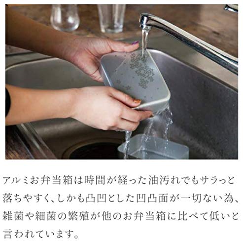 アルミ弁当というと、ちょっと古風な感じがすると思いますが、その機能性がとても魅力のランチボックスです。アルミニウムはとても軽くて強度が高い為、ぶつけても変形しにくく、小さなお子様でも軽々と持ち運びができます。また、アルミお弁当箱は時間が経った油汚れでもサラッと落ちやすく、しかも凸凹が一切ないため、雑菌や細菌の繁殖が他のお弁当箱に比べて低いといわれています。