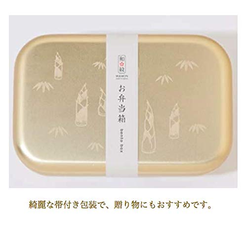 のレン アルミ 弁当箱 日本製 容量450ml スクエア レトロ ランチボックス アルマイト加工 (筍ゴールド)