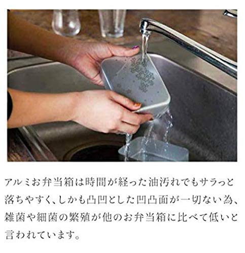 アルミ弁当というと、ちょっと古風な感じがすると思いますが、その機能性がとても魅力のランチボックスです。アルミニウムはとても軽くて強度が高い為、ぶつけても変形しにくく、小さなお子様でも軽々と持ち運びができます。また、アルミお弁当箱は時間が経った油汚れでもサラッと落ちやすく、しかも凸凹が一切ないため、雑菌や細菌の繁殖が他のお弁当箱に比べて低いといわれています。