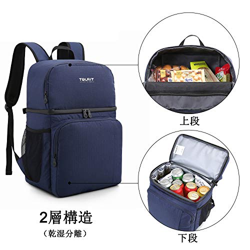 TOURIT 保冷バッグ お弁当 クーラーバッグ 大容量 保温バッグ リュック 買い物 運動会 お花見 アウトドア 二段