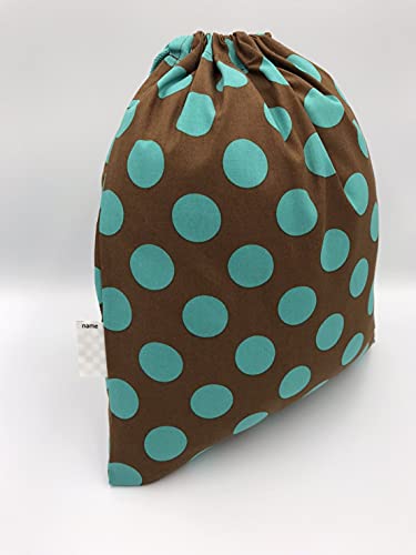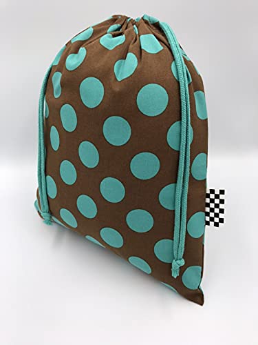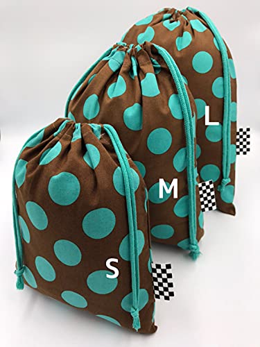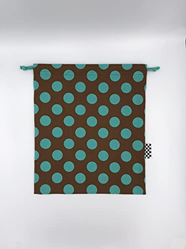 布くろ屋 ハンドメイドきんちゃく袋 (L, ビッグドットブラウン×ターコイズ)