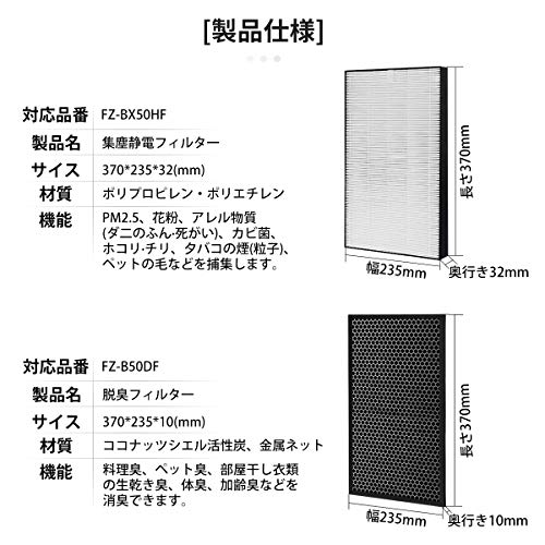 【材質】FZ-B50DF( 活性炭 ) と FZ-BX50HF(ポリプロピレン、ポリエチレン) , 空気清浄機用交換フィルター互換品(非純正)