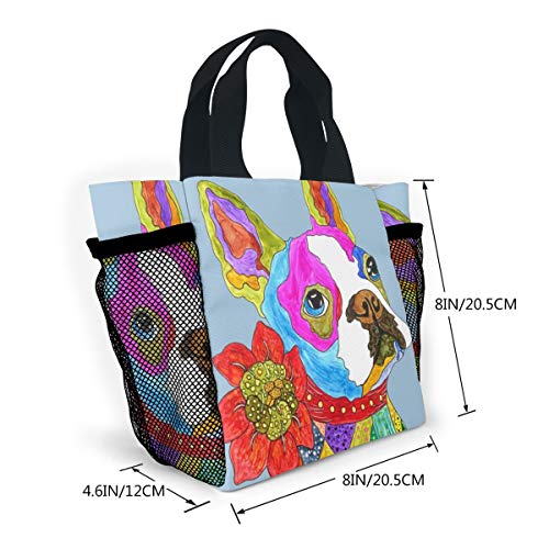トートバッグ ランチバッグ お弁当バッグ 手提げバッグ オシャレ ボストンテリア 花と犬 食品収納 大容量 軽