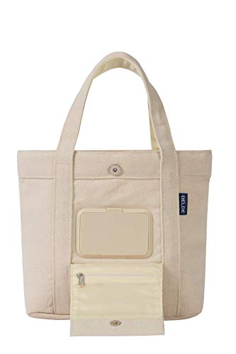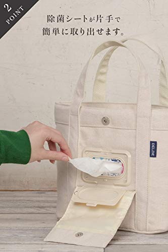 DELDEシートケース付ランチバッグ(片手でシートが取り出せるミニトートバッグ)(キナリ)