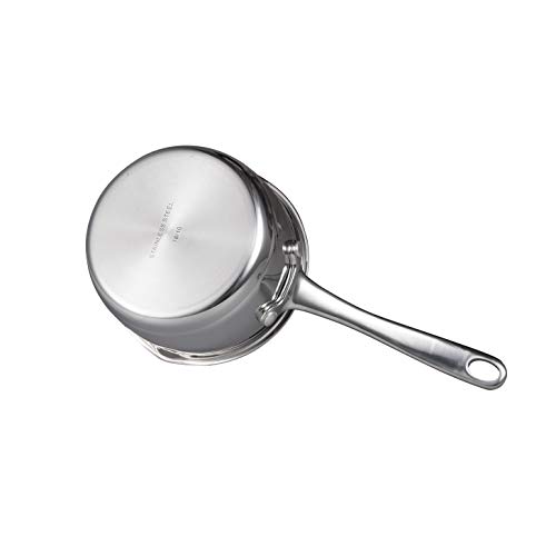 ミルクパンのサイズ:直径13cm 高6.6cm ハンドル長14cm 重量:416g 満水容量:500ml 材質:18-10ステンレス(注意:IHガラスプレートと接する鍋底の直径10cmですが、お客様はIHコンロ使用可能な最小サイズを確認してください。使用可否はIH本体の個体差で変わってくると思われます、IHで使用する際は注意が必要です。)
