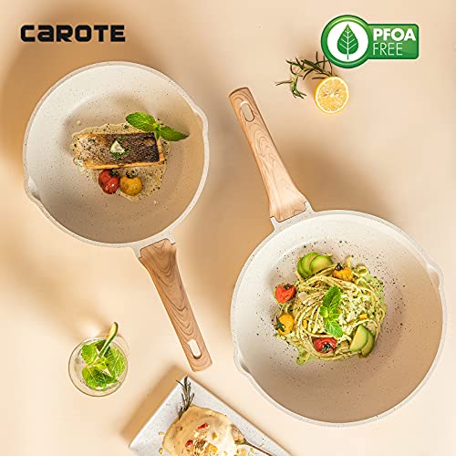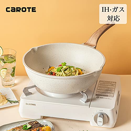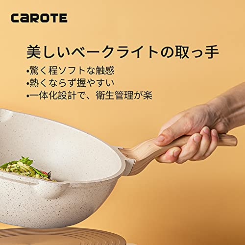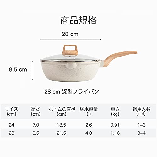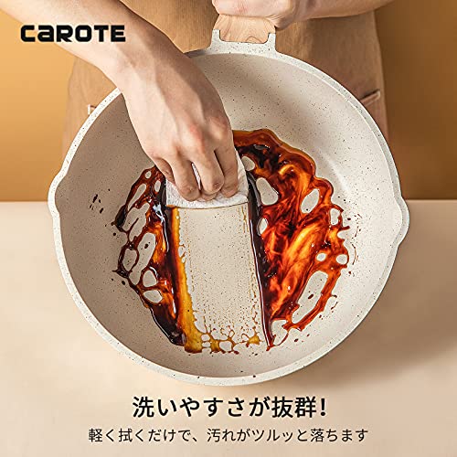 CAROTE 深型フライパン28cm IH対応 5層マーブルコーティング 焦げ付きにくく洗いやすい炒め鍋 1年保証 オ
