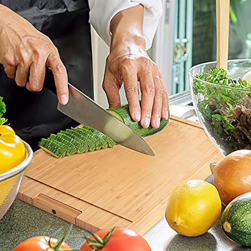 まないた 天然竹製 スタンド付き 溝付き カッティングボード ピザ キッチンボード 抗菌