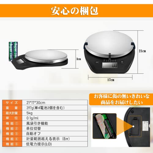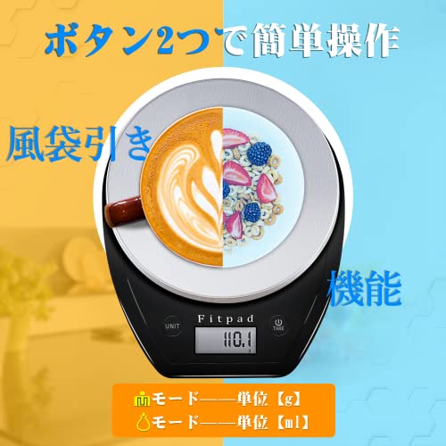 | 商品名 | キッチンスケール Fitpad はかり キッチン 高精度 計量器 風袋引き機能 ml単位 ミルク・水の計量可能 測り デジ |