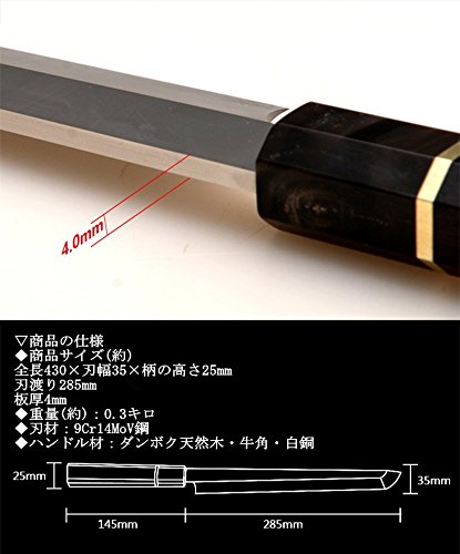 | 商品名 | Utaki 蛸引包丁 刺身包丁 柳刃包丁 刃渡り280 先丸蛸引き包丁 (関東型刺身包丁) |