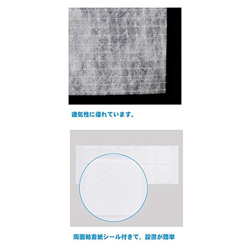 【優秀な捕集能力】エアコンに取り付けるだけで、貼り付け用両面粘着シート入 通気性に優れます。帯電フィルターが、花粉など目に見えない粒子をキャッチして離さない