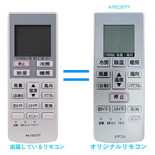 2)このリモコンは「A75C3777」の代替品として使用できますが、他のエアコンリモコンの代替品として使用できないため、ご了承のうえ、ご購入くださいますようお願いします。