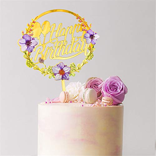 ケーキトッパー 誕生日 ケーキ飾り デコレーション ゴールド 花 Happy Birthday ケーキ挿入カード バースデー お