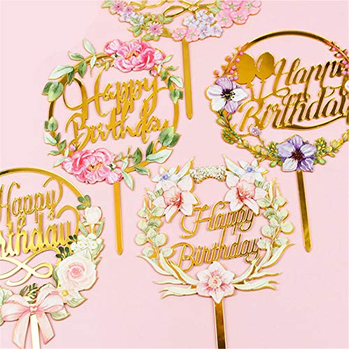 お洒落な花テーマのケーキトッパーです。誕生日ケーキの飾りに適しています。ケーキに挿すだけでデコレーションできます。