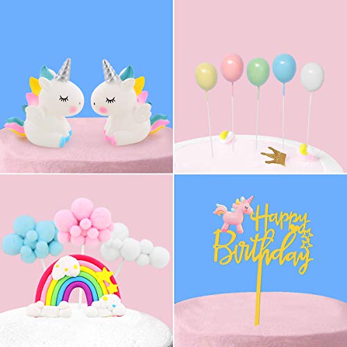 DUOUPA ケーキトッパー 誕生日ケーキ飾り ユニコーン 風船 虹 ケーキ挿入カード(12点セット)